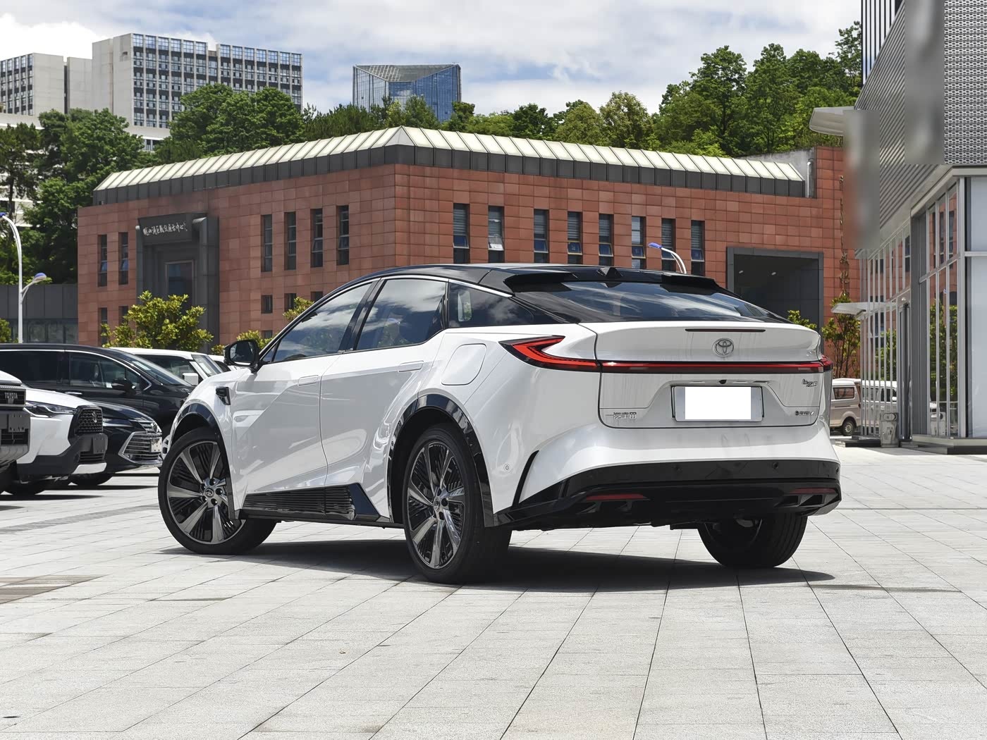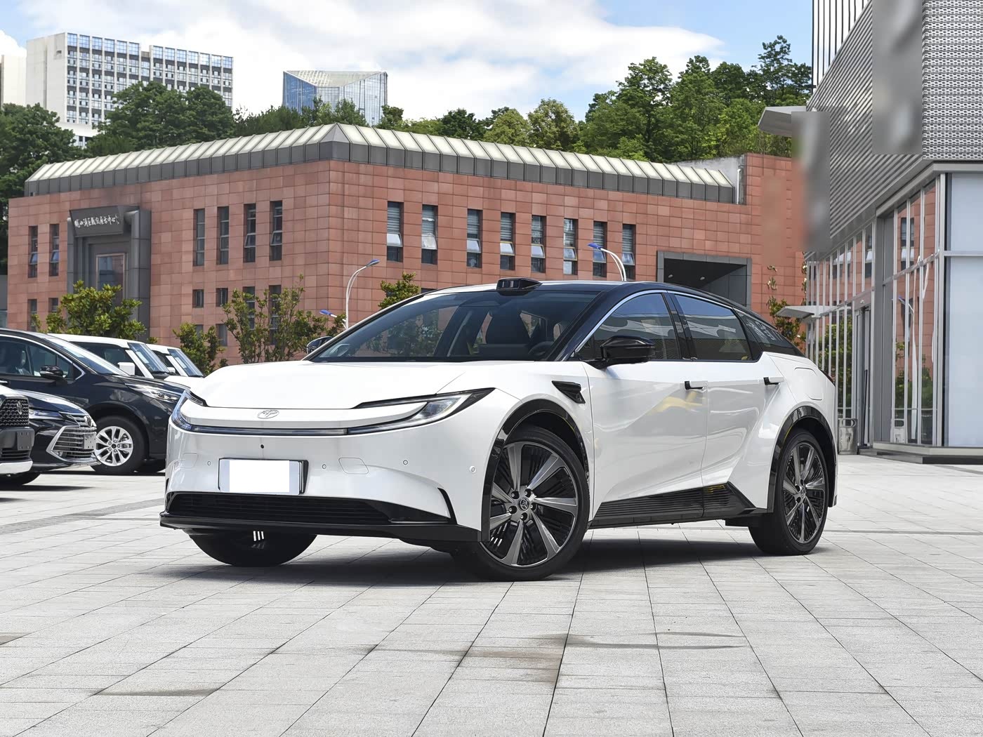 我们首先来看新车的外观设计方面,新车延续丰田 bZ 家族的设计语言,前脸以 “锤头鲨” 为灵感,打造出极具辨识度的视觉效果。全封闭式格栅搭配可发光的丰田车标,纯电身份一目了然,格栅下方的贯穿式星环灯带如同霓虹光带,解锁时呈现流水迎宾效果,仪式感拉满。两侧 C 字形日间行车灯与下方 7 字形分体式灯组形成呼应,内部透镜如锐利眼眸,车头机盖隆起的多条筋线增强了肌肉感,配合两侧导流槽设计,既优化了空气动力学表现,又提升了散热效率。值得一提的是,高配车型的激光雷达被巧妙集成在车顶前部,既不破坏设计整体性,又为高阶辅助驾驶提供了精准的环境感知能力,让科技与美学实现平衡。